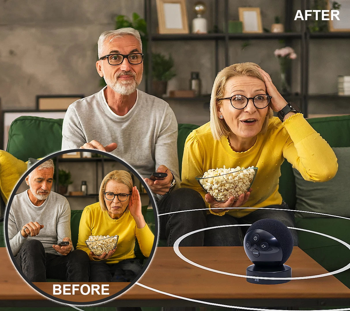 With HearSound SoundBall, the sound comes to you- not the other way around. This fully wireless speaker sits right by your side, delivering clear, amplified audio without blasting the TV volume to the max. Whether you're curled up on the couch or cooking dinner in another room, SoundBall puts dialogue and detail within arm’s reach. No tangled cords. No straining. Just immersive sound, your way. Independent volume control and built-in USB charging make it easy to stay connected, wherever you are.